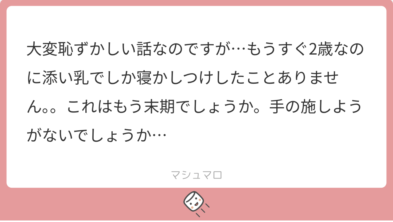 その大変な添い乳を2年間頑張ってこられたのは、すごいことだと思います!