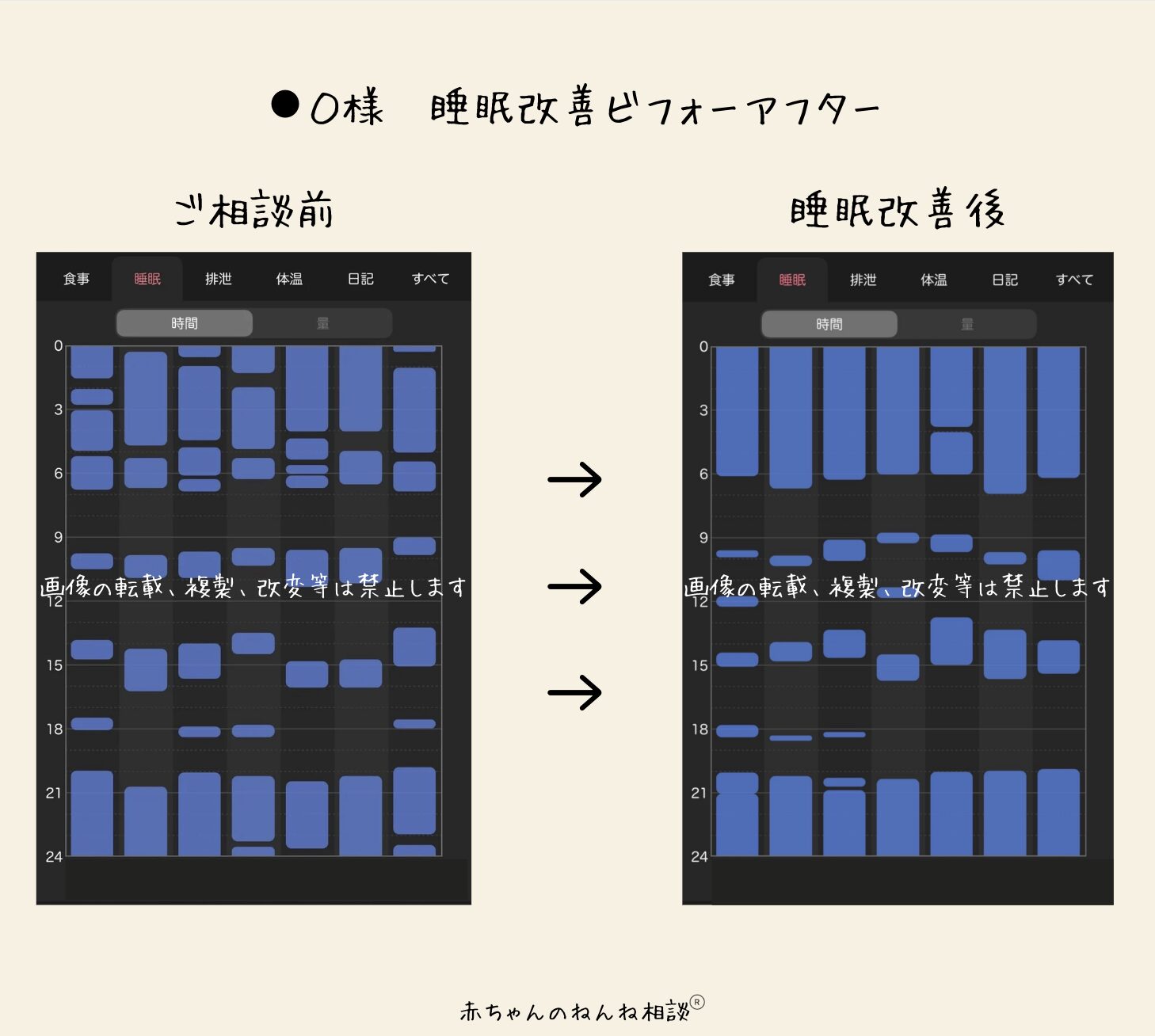 今は私自身もまとまった時間寝られるようになり、夜間に起きても動じることなく対応し、再入眠も容易になりました。